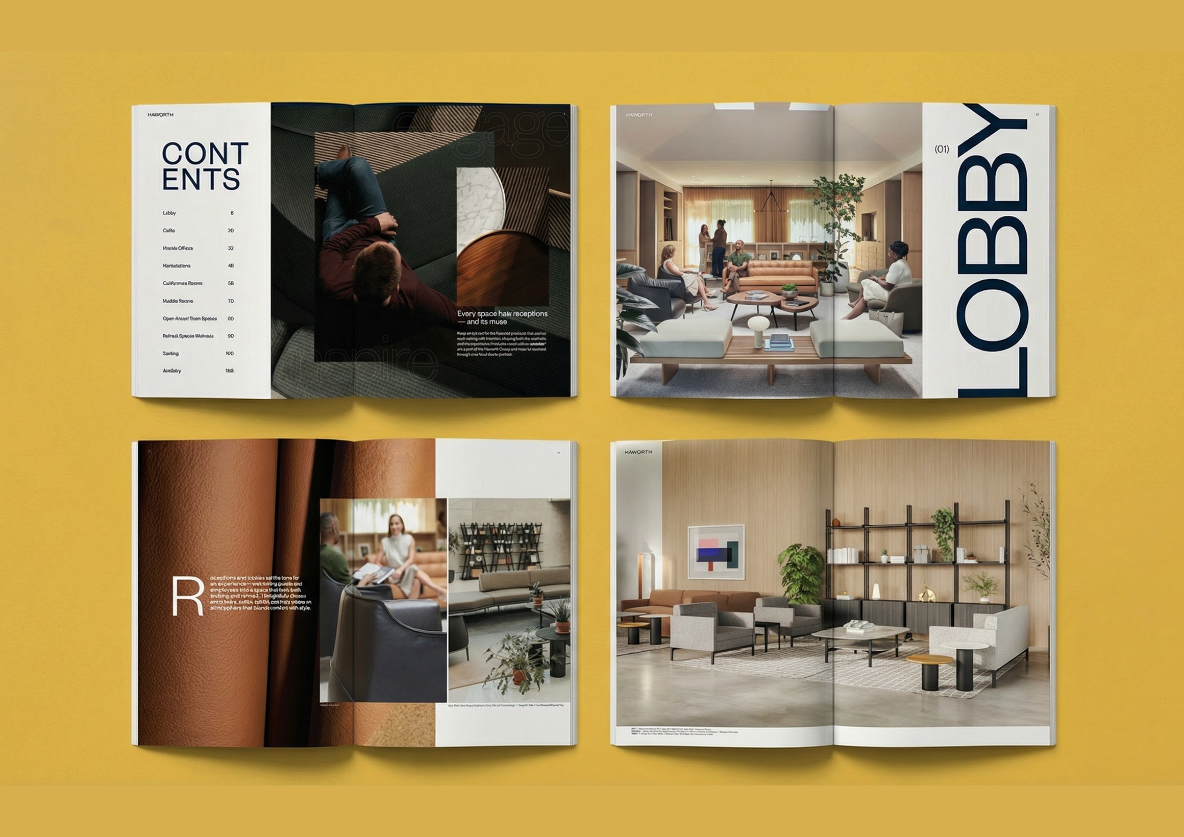 I was tasked with reimagining Haworth’s Legal LookBook after the marketing team sought a fresh, elevated design. Building on a strong concept developed for the A&D Community, I collaborated closely with marketing, workplace designers, and our studio manager to create a modern, cohesive lookbook that resonated with our audience. The final deliverable included a print-ready booklet and a digital 11x17 PDF with interactive hyperlinks for easy navigation. From concept to completion in under a month: a fresh, interactive Legal LookBook that wowed Gensler.